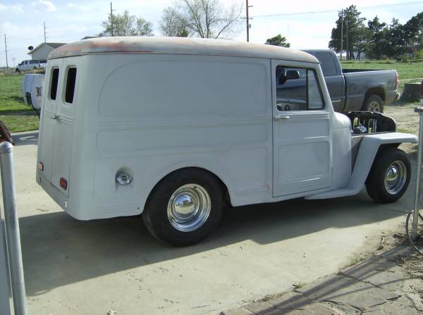 “This is a really cool machine. 1951 willy’s panel nearly done just needs a little imagination needs interior and a few things. done is mustang II front power disc brakes ford rear brakes work .good running 350/ 350 needs some glass and finishing can use for advertising your business. New colo title in hand.look at the pics. ”