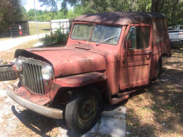 “1949 willys overland, 2 wheel drive, selling for parts, very rusty, was grand pops, he went to paradise and left this behind, 4 cyl motor, no title, sold with bill of sale $500 obo or trade for fire sticks. Not running selling as a whole parts vehicle.”