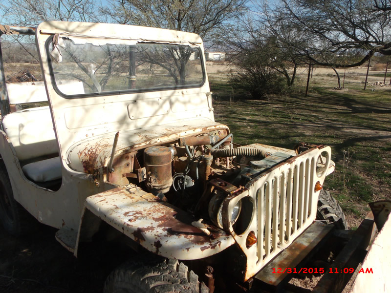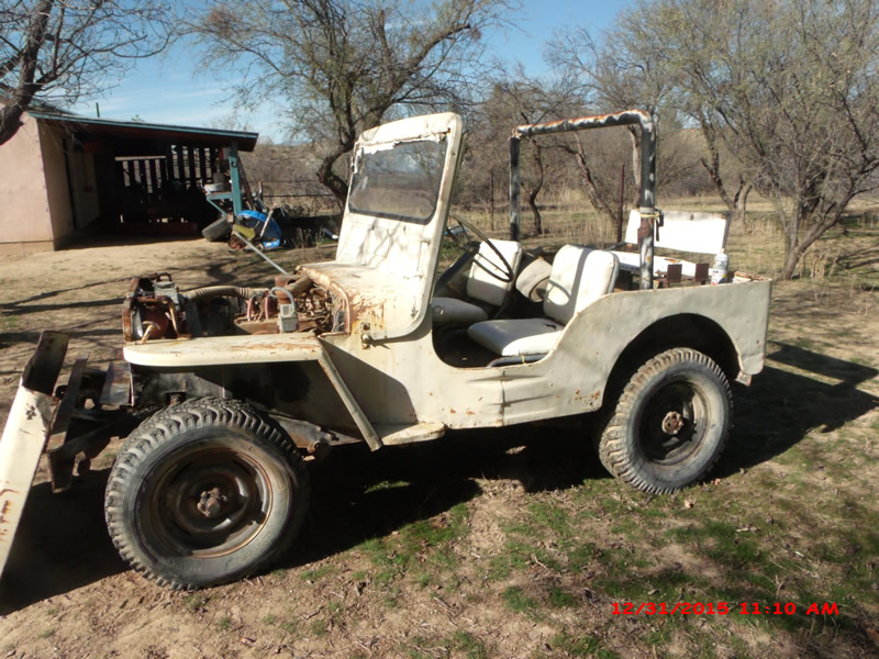 Jeep is in Arizona and has a little rust but most parts are savable. I am getting to old to start and finish this part of history. I will help with delivery”