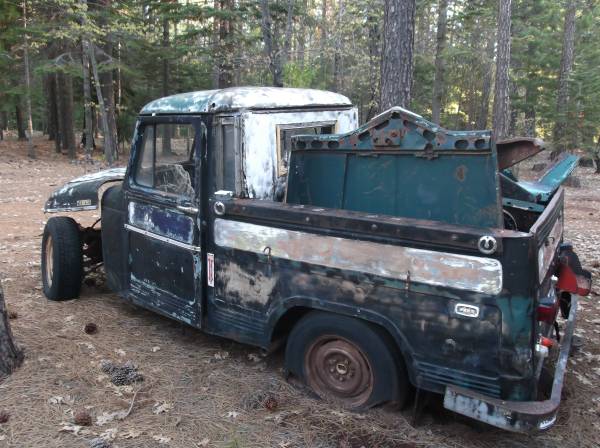“2wd willys. Station wagon made into a pick up. V6 engine (Ford I think) with automatic. Front end wrecked. Have replacement body parts and radiator.