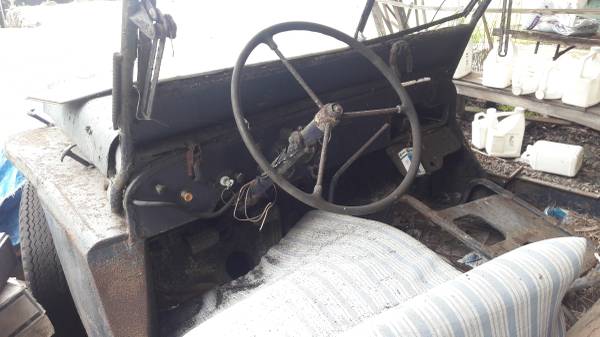 “Buy one get one free. Two 1940’s Willys jeeps. The blue-ish one runs. Brakes are not great but it has been in use as a farm vehicle until recently. The grey one was street legal until it blew a head gasket about 10 years ago.”