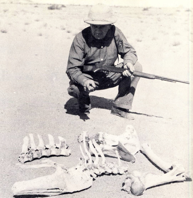 A typical camp scene—time for oiling the rifle and catching up on correspondence.