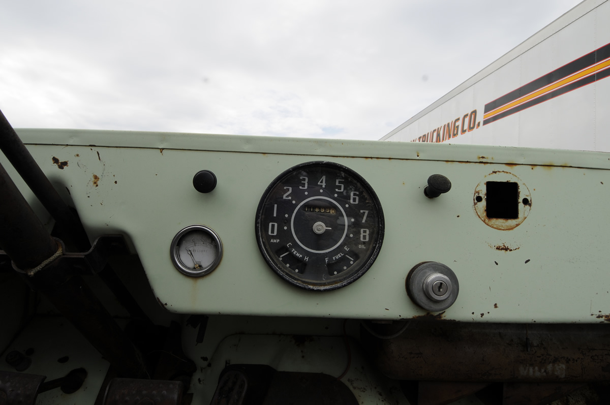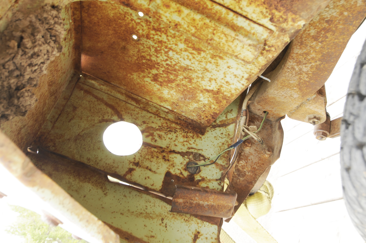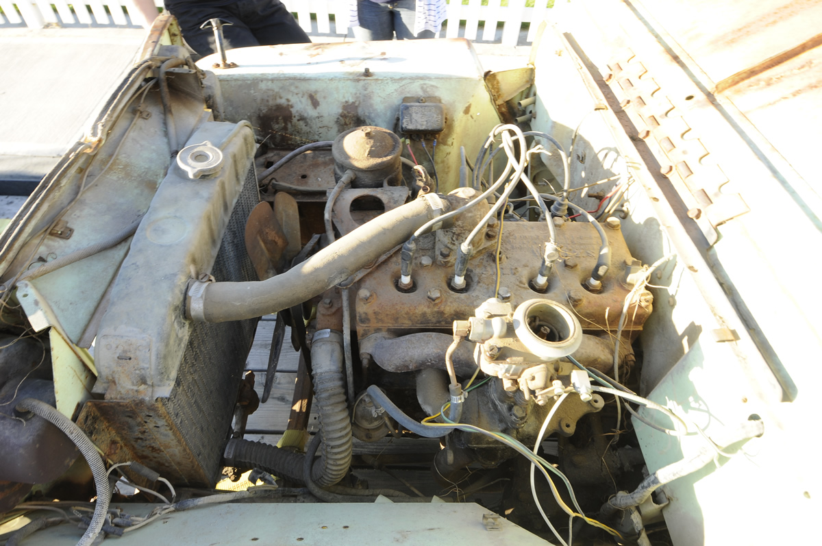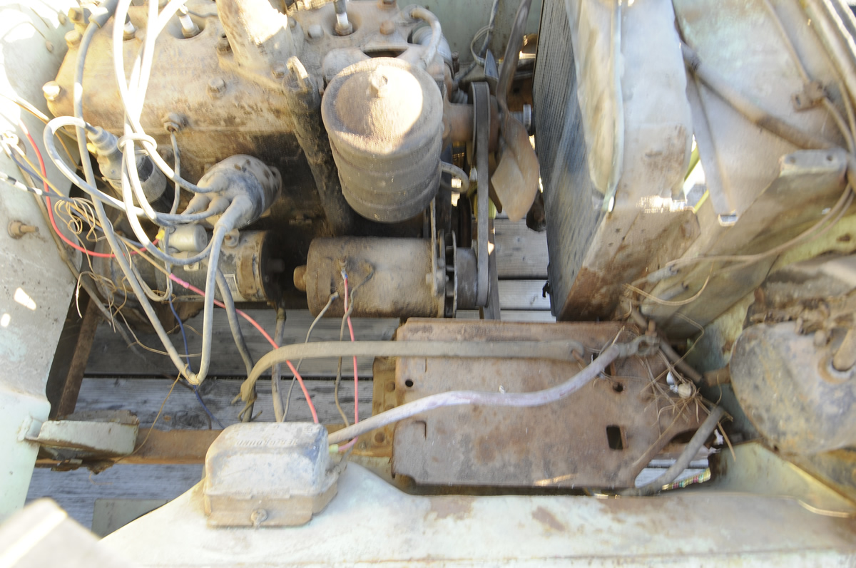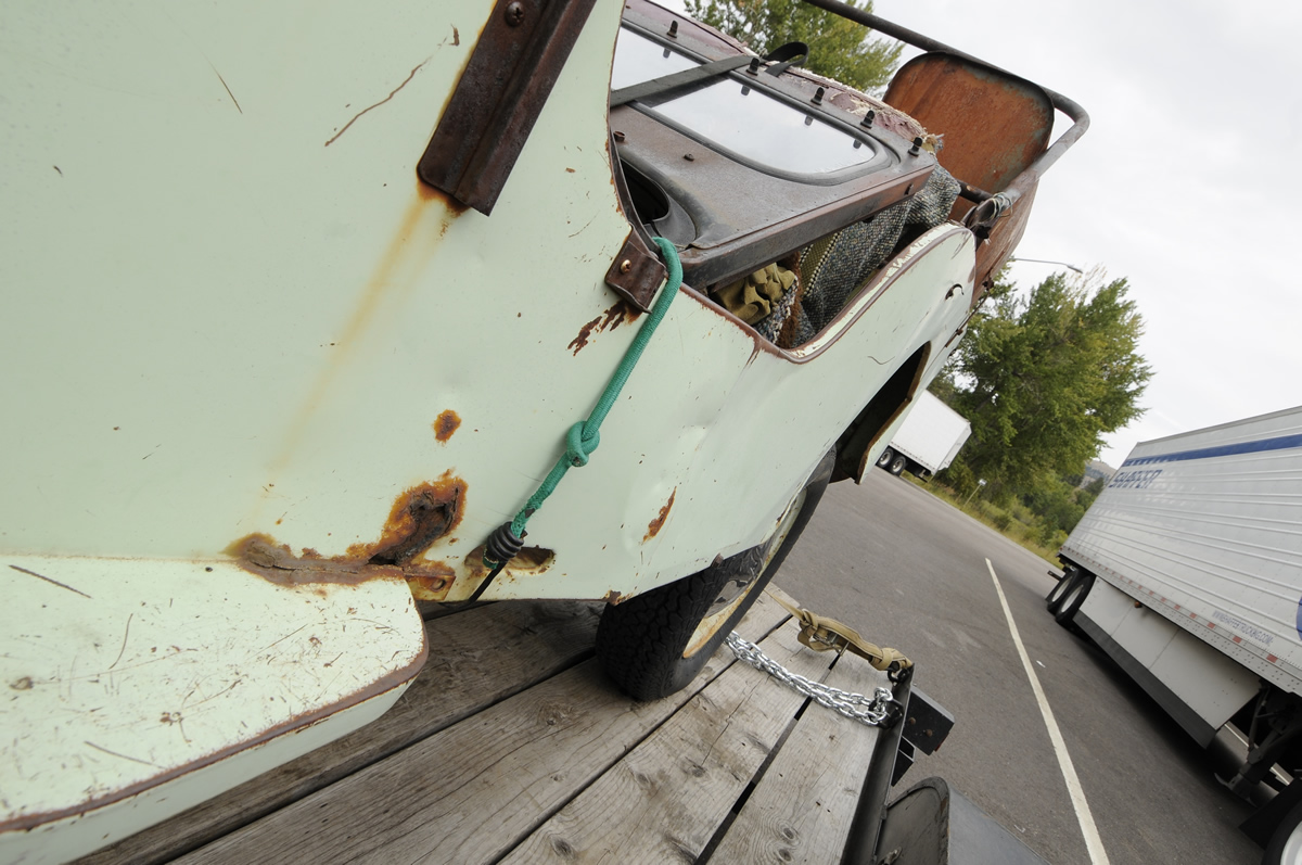 Rusty was owned and driven (apparently very roughly) on a farm near Billings, Montana. There are numerous welds, necessary to fix the cracks that appeared. The hubcaps have all kinds of dents, as does the body, the grille, hood, and the fenders. No part seemed spared. According to Lloyd, the man we bought it from, he purchased at an estate sale. The fact was, the farmer who owned it refused to sell it while alive, so Lloyd had to wait until he died. Lloyd was told it ran until it was parked and that it was parked due to the man becoming unable to drive it. At least, that’s the story. Still, the engine spins, the tranny shifts, and the jeep rolls easily.