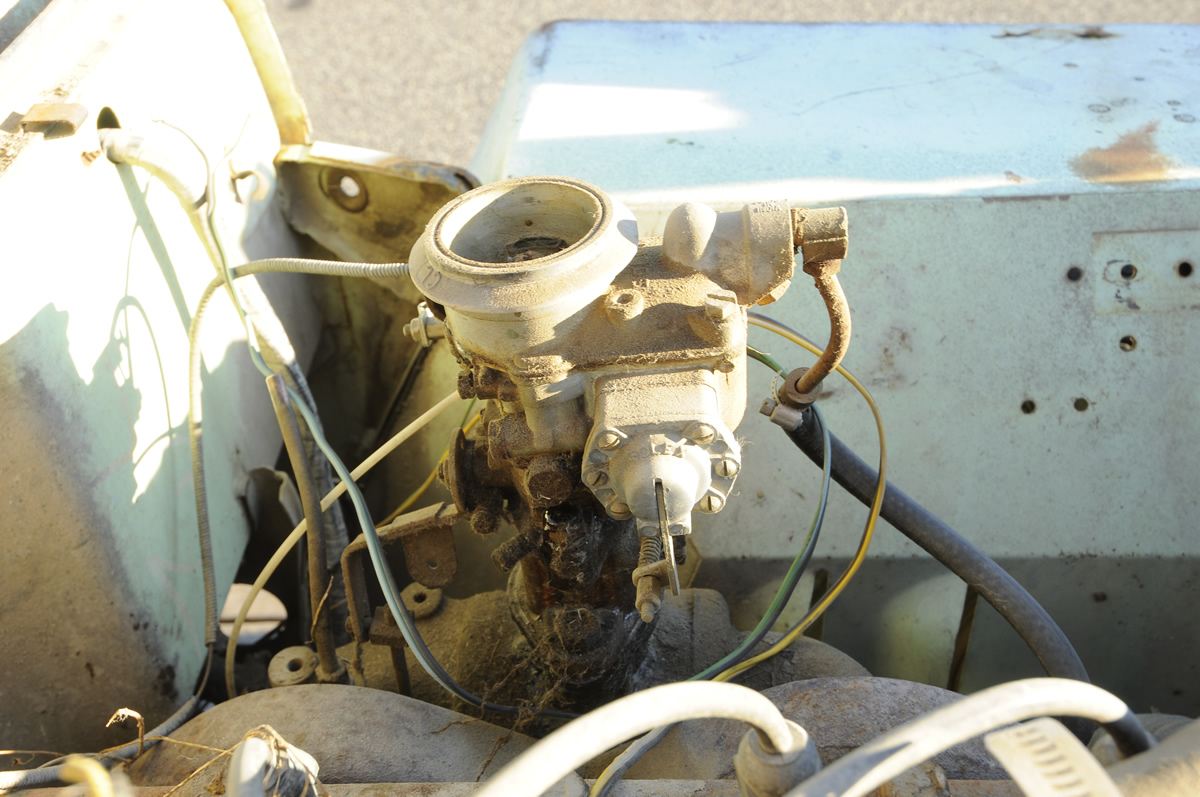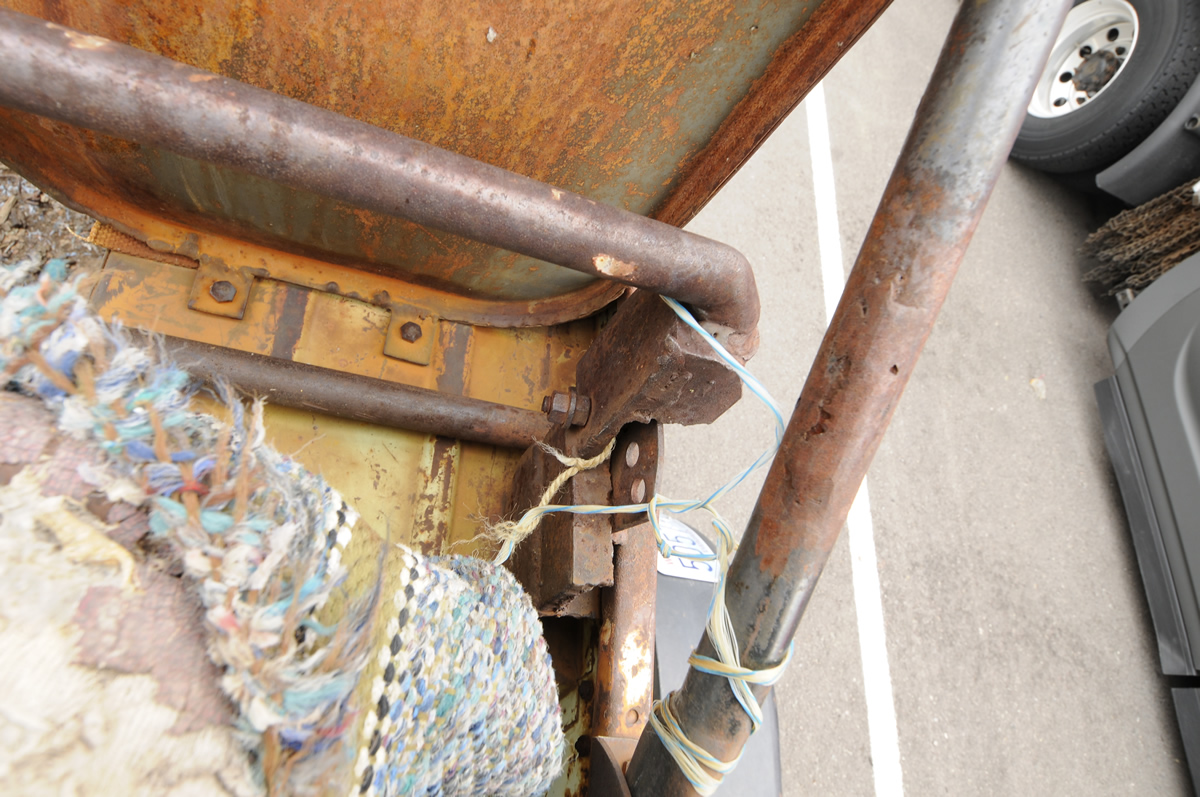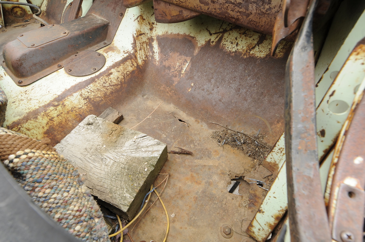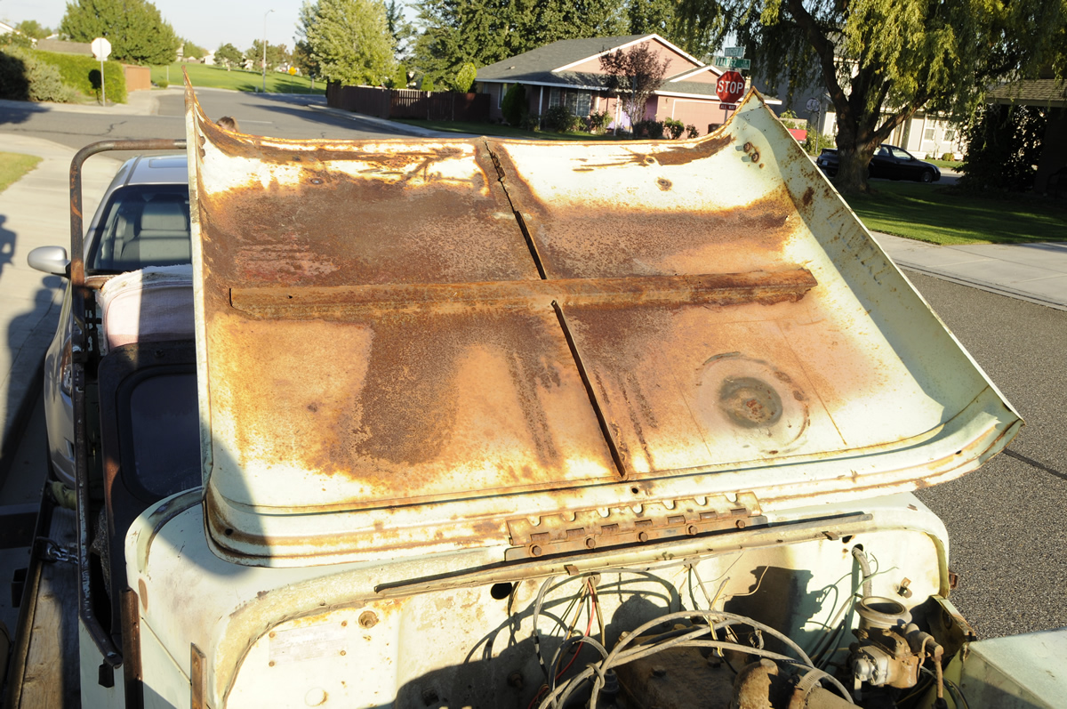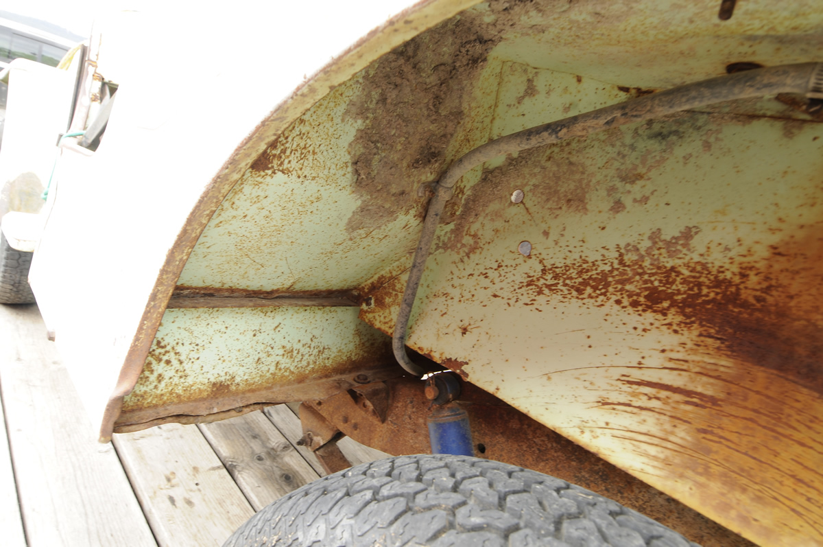 Rusty was owned and driven (apparently very roughly) on a farm near Billings, Montana. There are numerous welds, necessary to fix the cracks that appeared. The hubcaps have all kinds of dents, as does the body, the grille, hood, and the fenders. No part seemed spared. According to Lloyd, the man we bought it from, he purchased at an estate sale. The fact was, the farmer who owned it refused to sell it while alive, so Lloyd had to wait until he died. Lloyd was told it ran until it was parked and that it was parked due to the man becoming unable to drive it. At least, that’s the story. Still, the engine spins, the tranny shifts, and the jeep rolls easily.