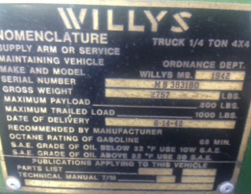 Katey’s is selling their beloved and trust trail-modified MB. It’s listed on the title as a 1942, but the serial number stamped into the dash plates of MB 383180 puts it as a 1944. However, the plate is obviously aftermarket. I’ve suggested she check for the serial number on the frame and body gusset. Contact her at katey@pioneermillwork.com if interested.