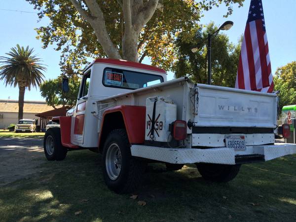 “I Have a 1958 jeep Willys excellent condition . 2WD 350 Chevy motor 700 R transmission with a ford rear end . it drives and runs like a dream”