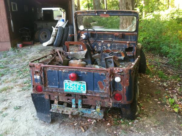“Parting out a early 50s Willys m38 army Jeep. Extremely rusty and modified body. Has a Dauntless v6 engine. Frame looks to be in decent shape, but may have some modifications. Parts may fit cj jeeps as well. Not selling the VIN tag.