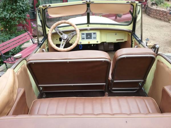 “This 1949 Willis Overland Jeepster is the perfect driver with just enough work needed to make it your own. It has: professionally rebuilt original 4 cyl. flathead, rebuilt original 6 volt generator and starter, all new brake drums, wheels, cylinders and master cylinder. Original style wiring harness, runs great and looks good. Newer paint has some chips Top and top frame are installed but needs to be stapled to the oak base member. I just leave it down, fair weather car with no side curtains. The car has only about 150 miles since body on restoration and engine build.”