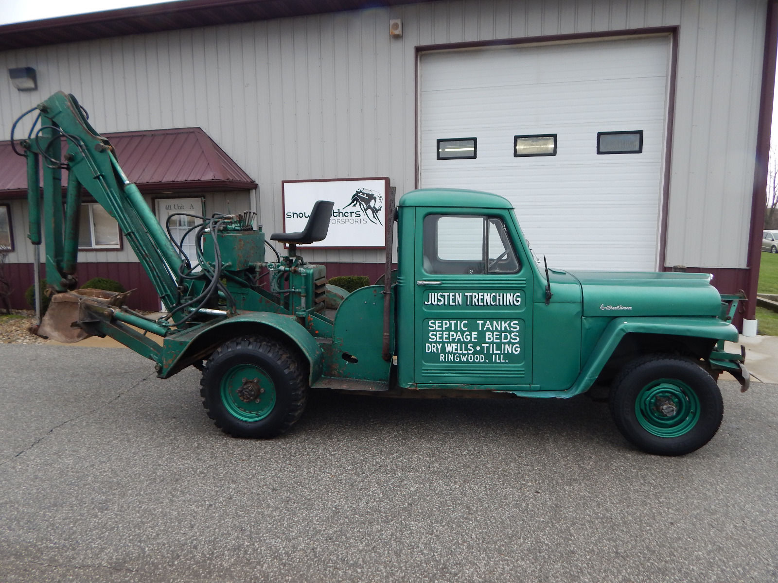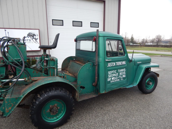 “Where do I start with this find! What we are looking at is a 1955 Willy’s that was converted into this Willy’s Digger. Owned by the original family since day one and it is solid! We always go through our cars and on this one other than a deep cleaning, we changed the oil like always and brake master cylinder along with plugs fuel filter and it runs and stops really well. All of the hydro fluid is new as well for the digger since we had to take it off for transport. The mechanisms in the back work and although we did not dig any holes, it looks like it will do a damn good job at it. Please ask any questions regarding anything you see and for any additional pictures as well.”