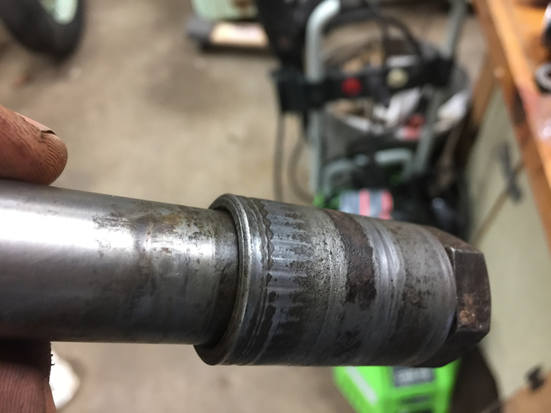 Moving to the steering, the bushing inside the bell crank was worn. Somehow the bearings wore vertical grooves into the bushing as well.