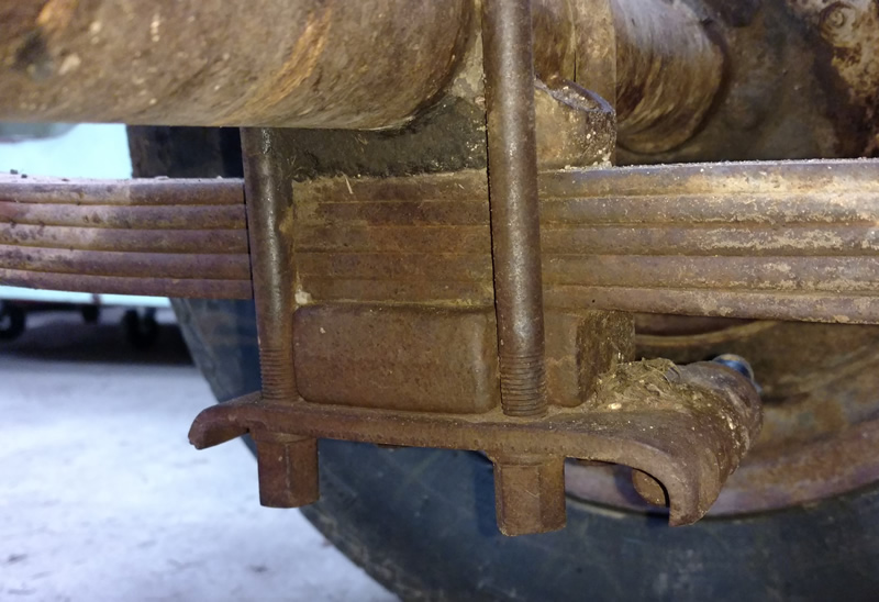To make it more confusing, I have five leafs in the front and four in the back (on both sides). I think I should have only 3 leafs. Perhaps the previous owner broke them and installed heavier ones? Or, the number of leafs was changed after 1956? I don’t know.