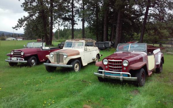 “Three jeepster. One 1948. Two 1950’s. The one 50 runs, the other two will need motor work.