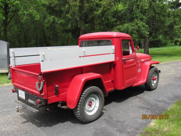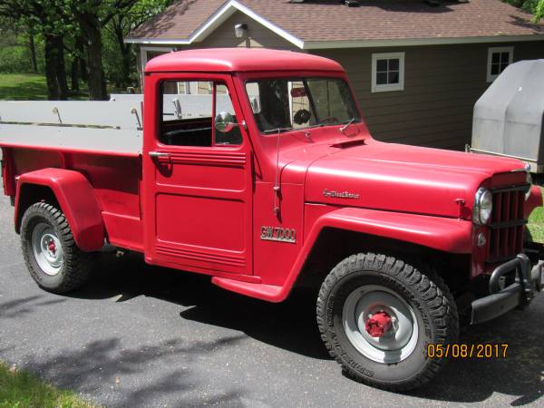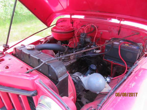 “A rare beauty pick up….original Hurricane 6 motor…4 speed manual…hi-lo rear end…4 wheel drive…painted in 1976 by tech school students…new tires…new foam and seat cover ….new carpet on floor…new bed/treated 3/4″ply with rubber bed liner…runs good…little rust on cab corners ,other wise very good body….all glass is good….floor boards solid……..Needs carb kit & turn signal control which I have……Removable wood side boards….Price is firm,don’t need any help selling”