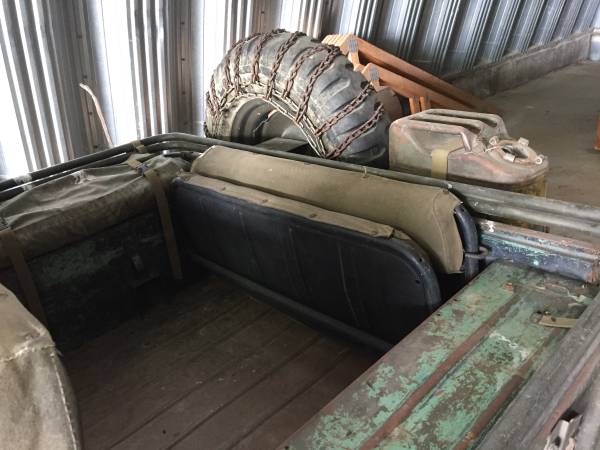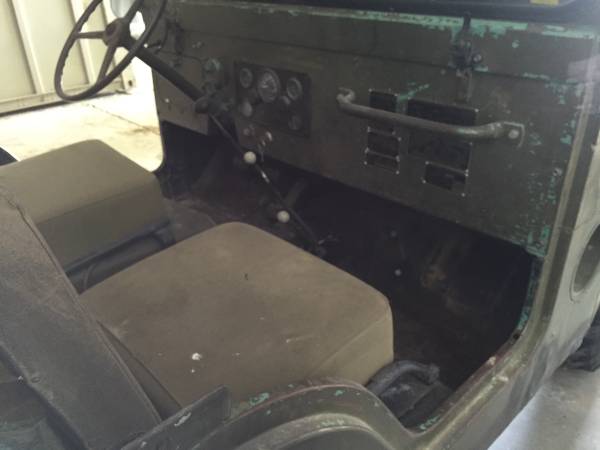 “Military Jeep; 1953 M38A1 ¾ ton. This Jeep is in fair condition for being 63 years old. It runs but has leaky seals. Lots of spare parts including two tops and doors. $5000 firm”