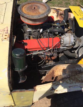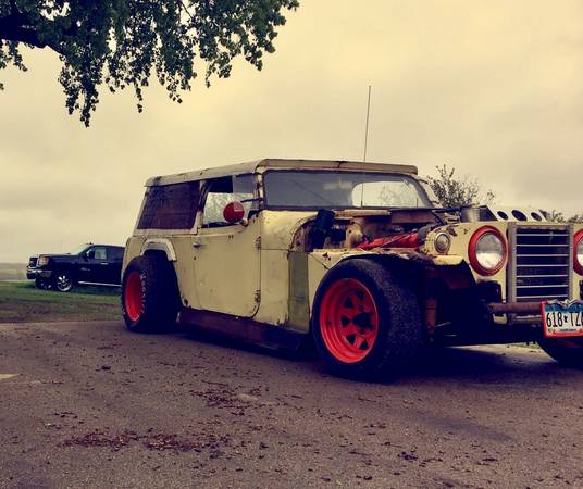 “1954 Jeep Willy’s Rat Rod. 430 CI Buick motor with a turbo 400 automatic transmission. Supposedly LOW miles on motor and trans (60k) Plugs wires, and recent tuneup has been done recently. New locar shifter. The original Jeep frame has been notched and channeled in order to lower. Square tubing and a platform done in the rear to still be able to haul anything if needed. The front has a complete disc brake setup from speedway attached on a 50s pickup axle. The top has been chopped 8″. 20 Gallon tank fastened to the underside so the original filler neck is still used. Doors and tailgate opens and shuts, metal work has been done inside. Also has temp gauge, oil pressure gauge, volt gauge, etc. Countless hours of work has been done to this jeep and there is not another one out there like it! This car draws a crowd wherever it goes, it’s fast, loud, and mean as hell! Car comes with a clean title.”