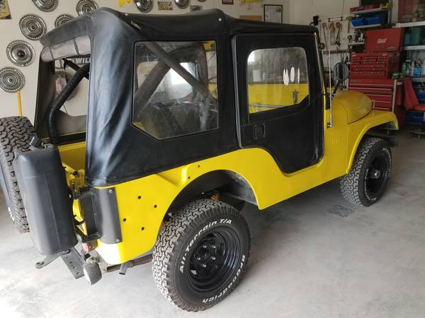 “56 CJ5 Originally from Arizona, very straight. Warn overdrive. Warn hubs. Ramsey winch. Dick Cepek jerry can and spare carrier. Roll bar. Tow bar.