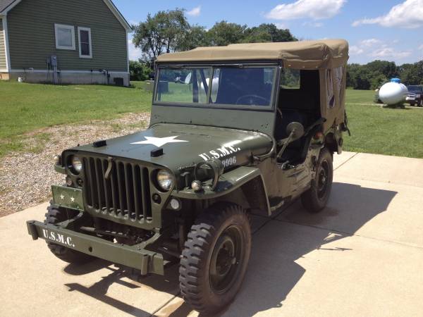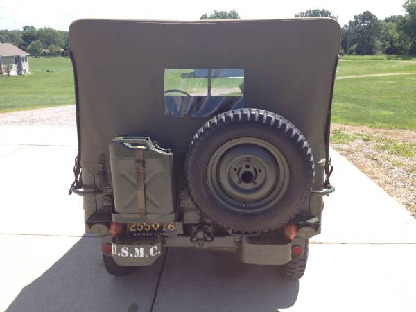 “Restored Willy’s MB. I am second owner, previously owned and restored by my uncle. Retrofit in 1950’s with M-38 electrical system for Korean War. Restoration, body work, paint and engine rebuild in 2004. New Front brakes and wheel cylinders. Tuned this spring. Recently rebuilt 24v generator, newer batteries, master cylinder, canvas (with doors) and newer batteries. This Jeep was always garaged, it is a great running well maintained vehicle. Used primarily for parades and military engagements. Have manuals, some spare parts. Receipts/ paper work available to confirm restoration and maintenance. 4819 miles since restoration.