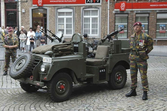 These photos show the Minerva, an armored jeep-like vehicle.  The famous MINERVA (built under license of land rover) not the nicest, but served for several years in the belgian army -this is an exceptional version (and very rare to find these days) of the recon group – it’s heavy plated and gunned – greetz