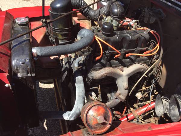 I can’t tell if the paint is original, but it does appear that the original color was red (Firewall is red) . The cowl is black, and looks great, but does not seem to be original. Top and side curtains are usable, but need to be replaces. The body is very solid. I can’t find evidence of repair, bond-o, rust issues, etc.