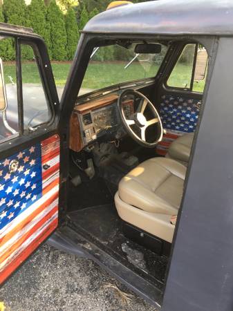 “This Willys is a cool truck. It is mounted on a S-10 frame with disc brakes, tilt front end, cab was extended 5″ for more leg room, 350 chevy motor, 5 speed stick, chevy drive line, F 150 dash and gauges and they all work, leather seats, Tires like new $6,500.00 or best.”