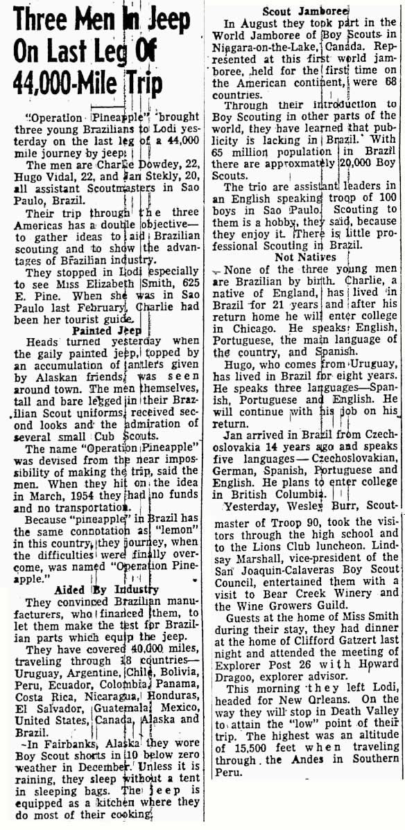 California’s Lodi News-Sentinel published a story about the last leg of their trip on January 18, 1956.