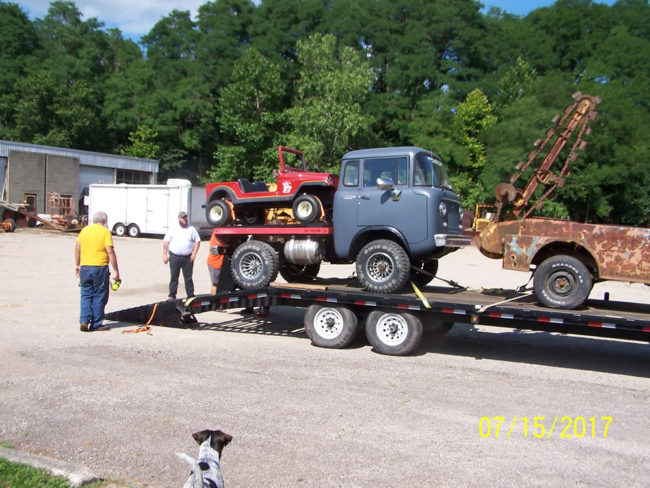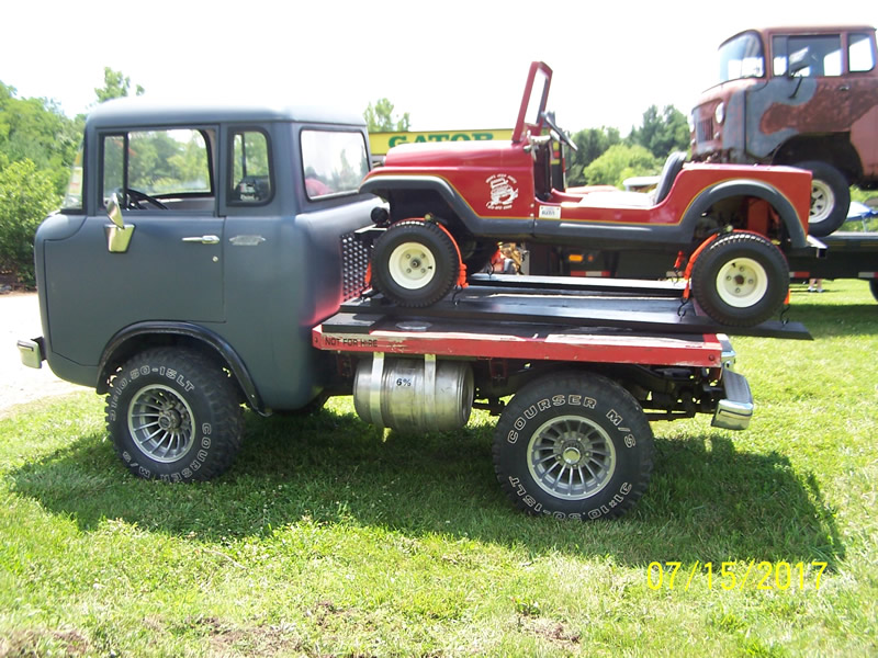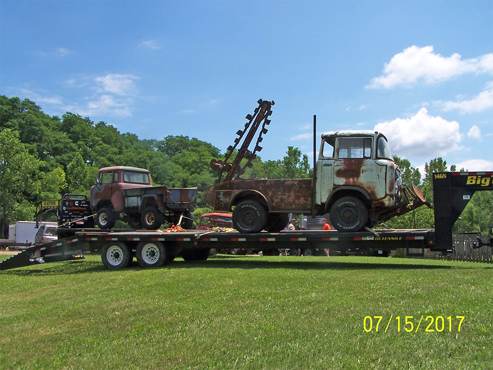 He wrote, “Over 30 FC’ers and friends spent part of their weekend at the Third Annual FC Gathering, July 14-16. The weather was hot but dry. There were 6 visiting FC trucks, one of which was a military M677 and one had a trencher. There was an early jeep pick-up (and even a 1936 MG Police Car…the only one in the US and one of two in existence. The owner was in Ohio for a show and stopped by to see the FC’s. He has an FC170 but did not have it with him.) There were 11 other FC’s on site for a total of 17 FC trucks in all. A few parts were traded.”