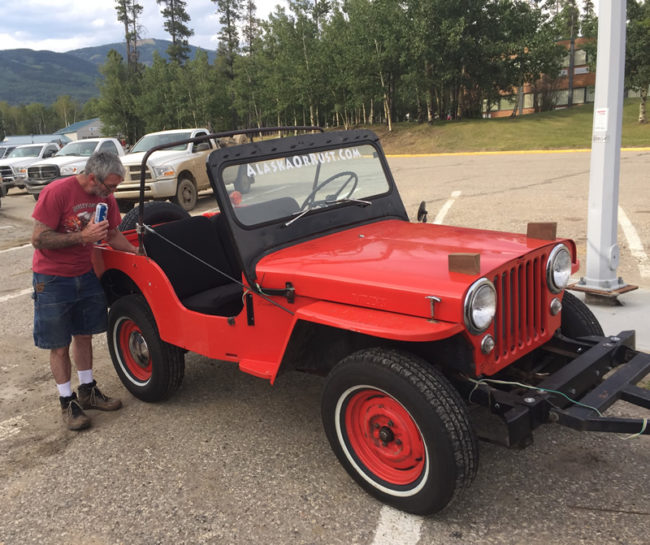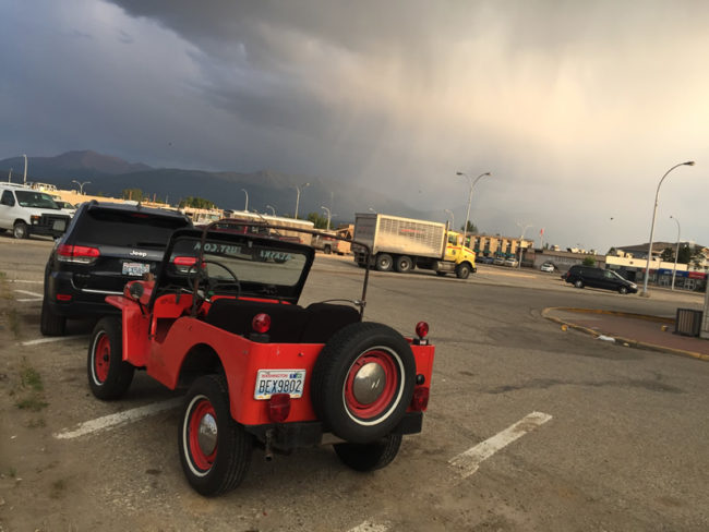 When we reached Grand Cache, we quickly found our hotel. Almost as quickly, a gentleman wandered up to tell me he’d never seen a two-wheel-drive Wlllys before. I was surprised he recognized that, but he explained that he’d been a mechanic for 35 years, so he knew a thing or two about vehicles. I asked him to sign Patterson: