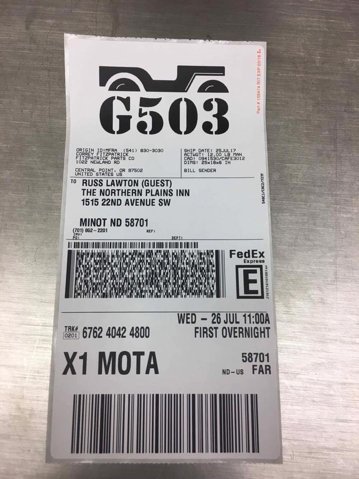 1. Russ and Cowboy saved the day by picking up Scott’s parts from Ron Fitzpatrick (Team G503) in North Dakota and delivering them to him in Canada.