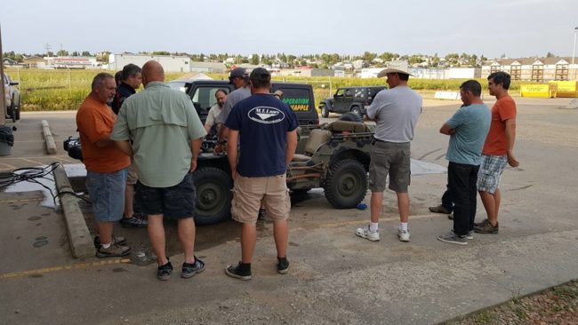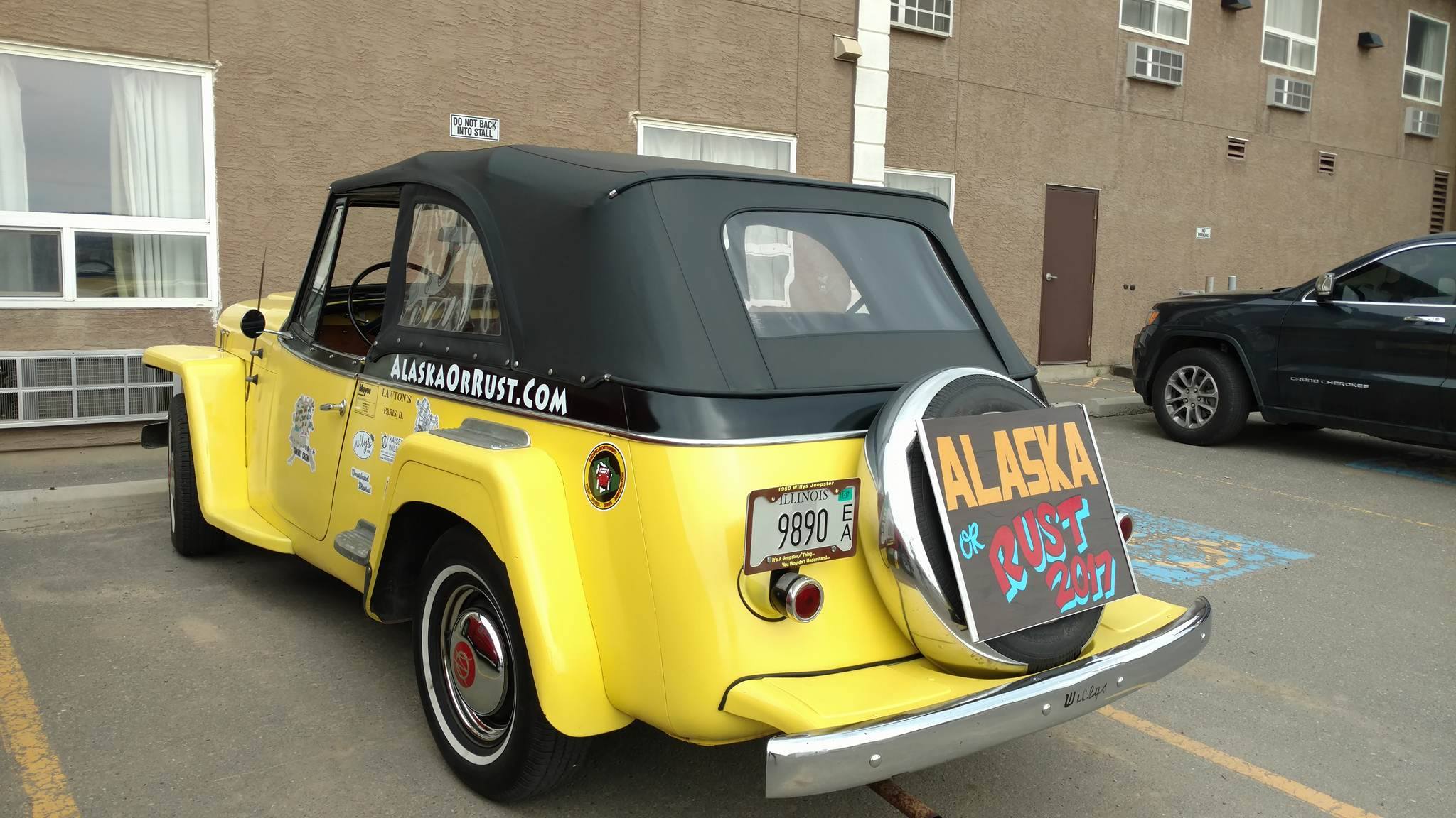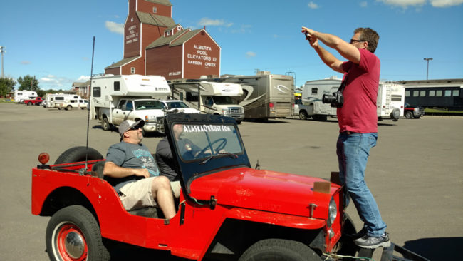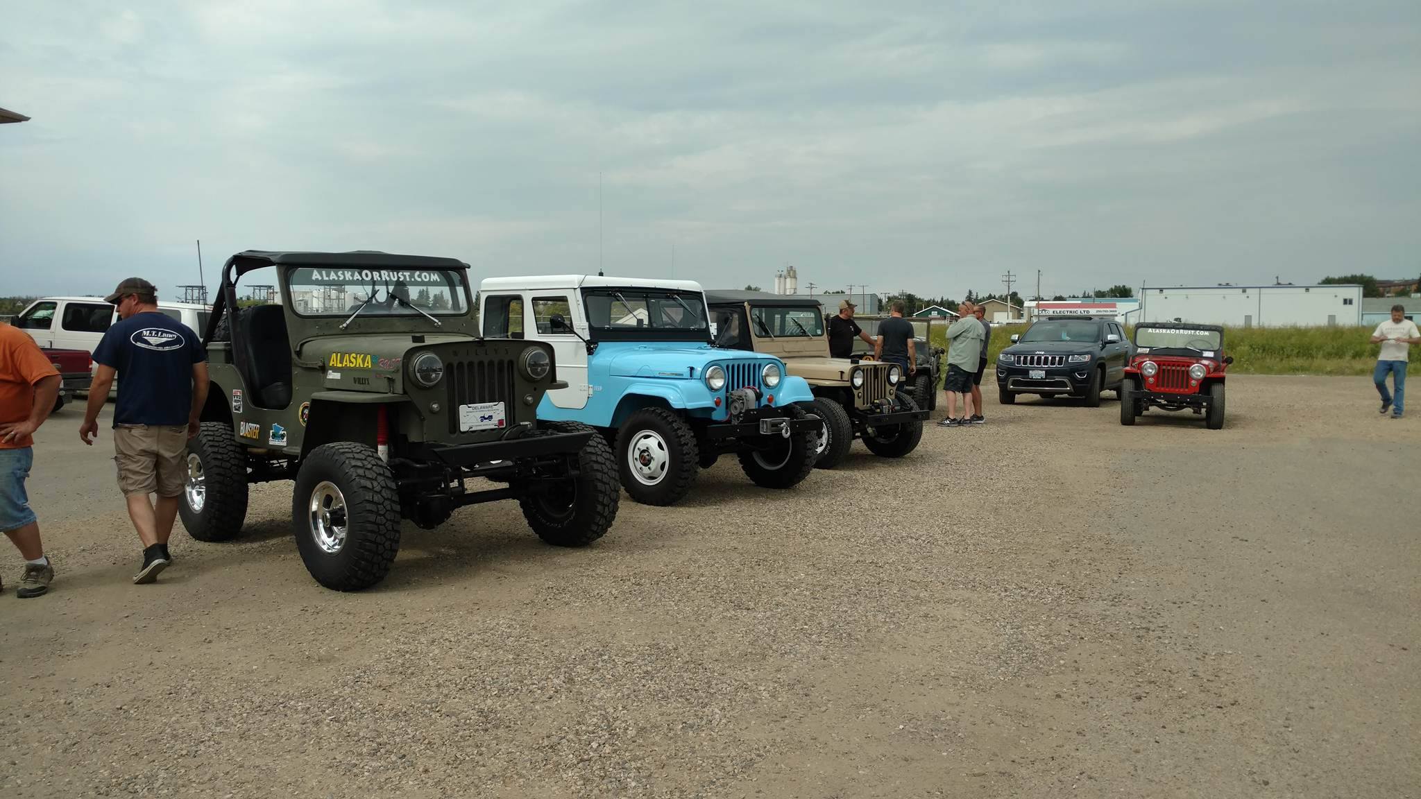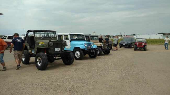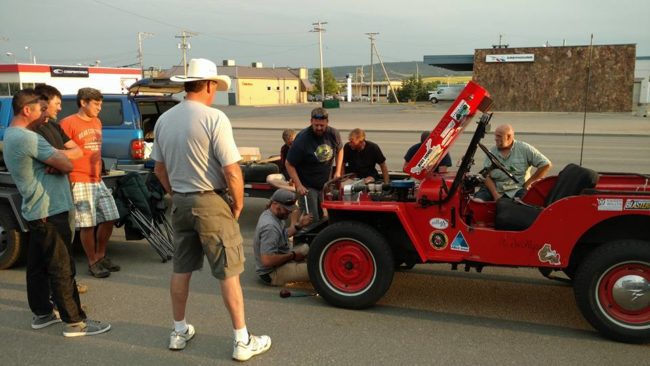 After we adjourned, most of us spent the afternoon fixing jeeps and running errands. At 3:30pm, we all gathered again and drove to Alaska Highway sign for group pics. Once we lined up the jeeps, a small crowd started to form. We asked them to come over and sign Patterson’s or Rob’s hood.