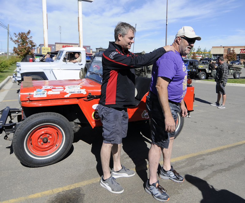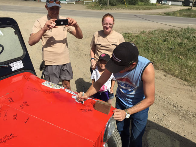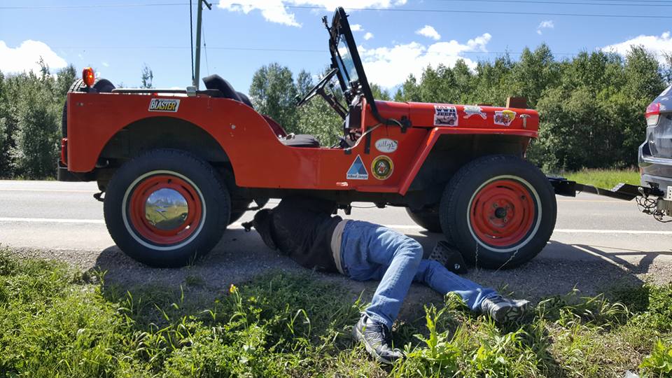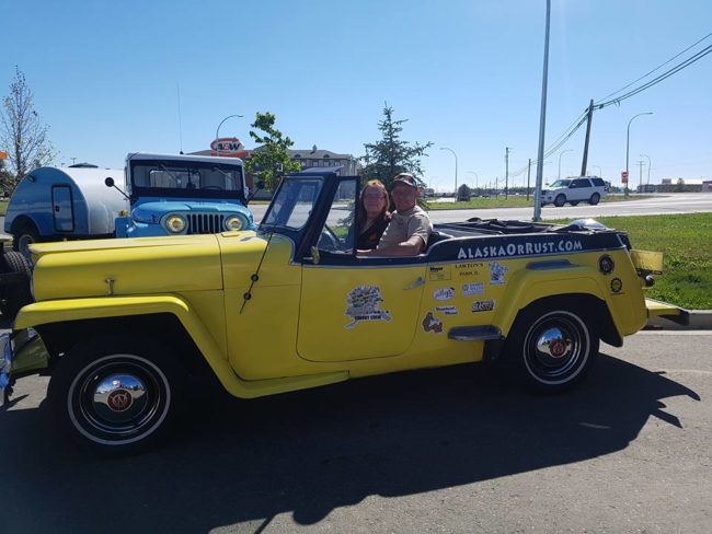 As we neared Fort St. John, focused on keeping my wheels in my lane as side winds toyed with me, I barely noticed a built jeep coming from the opposite direction. It turned around, then hopped in front of the Caravan. I didn’t put it together until the jeep led us to the town’s Tim Horton’s that it was Rainer Grimm in a jeep he calls the Monster.