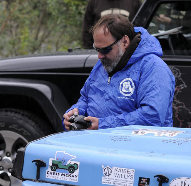 When we summited, we took a break. Those that had Pacific Northwest Four Wheel Drive Association hoodie-sweatshirts lined up for a photo in the rain.