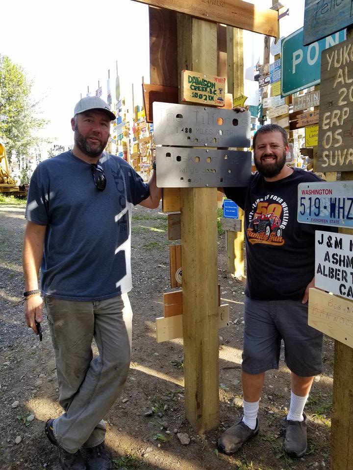 Alaska Or Rust jeeps parked in front of Watson Lake’s Sign Forest. The sign forest was a pleasant surprise.