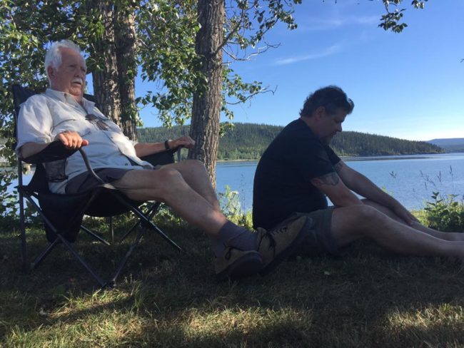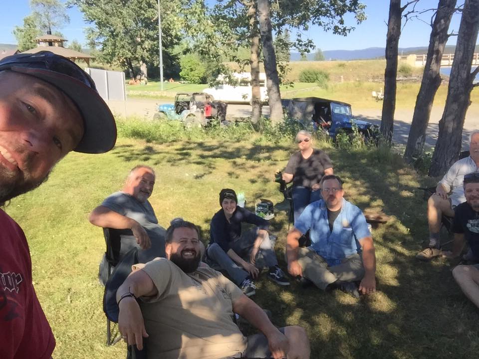 The accident forced Rob, Diana, Marty, Don, Merlin, Brittany, Fernando and Hugo (who’d stayed just south of Whitehorse on Monday night) to hunker down in the small town of Teslin. Some, but not all, got rooms, so a few are sleeping under a gazebo. Kudos to Don who pleaded for a room for Hugo and Fernando at the local hotel. I believe there were tears and promises of a first child or something drastic like that. The remainder of the crew slept outside … at least they had each other (and beer)!