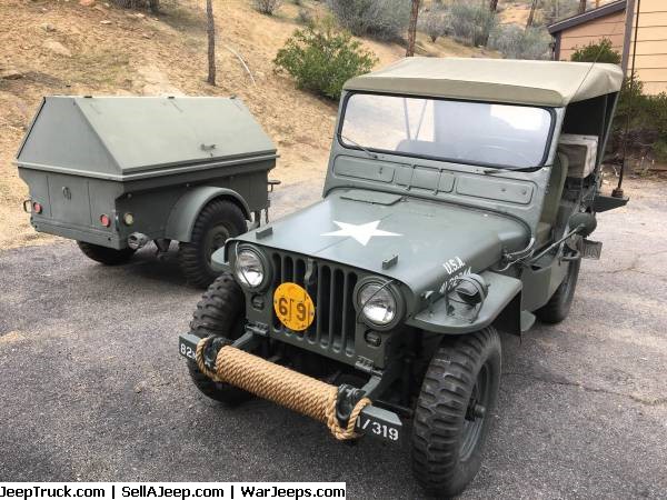 Selling a street legal 1952 Willys Army Jeep Model M-38 with lockable 1952 Dunbar-Kapple M-100 Engineer Ordnance Stock Trailer. This Korean War Jeep in Olive Drab over tan canvas was made to drive underwater, has only 13,900 Actual miles and 5,300 since restored. It is the last year for flat hood and fenders. The owner has been collecting Military paraphernalia for many years and when he goes to a show and sees a correct spare part he buys it and they are now included with the Jeep and Trailer (inventory listed below). Jeep and trailer clear and separate Titles, Jeep VIN is RMC105981 and Trailer VIN is 285801.