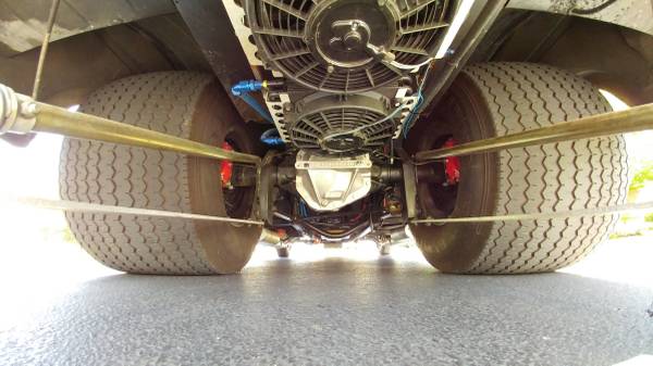 The Trans built to handle Large Horse Power… New High Flow Water Pump,. March Pully system is New,. Alternator is a 120 volt (new),..Headers are Sanderson block huggers wildwood disc brake and coilovers on all 4 corners.i believe the paint is older and has normal wear,but it shows very well as you can see in the pictures.All Gauges work with a Speedometer Too.You saw the Picture from the rear with the Fans, One is for Trans and one for Motor oil.Motor oil cooler was not hooked back up in front,But the lines are still there if needed.I do not drive the way it needs this hooked up.Trans cooler is stilled hooked up & working.