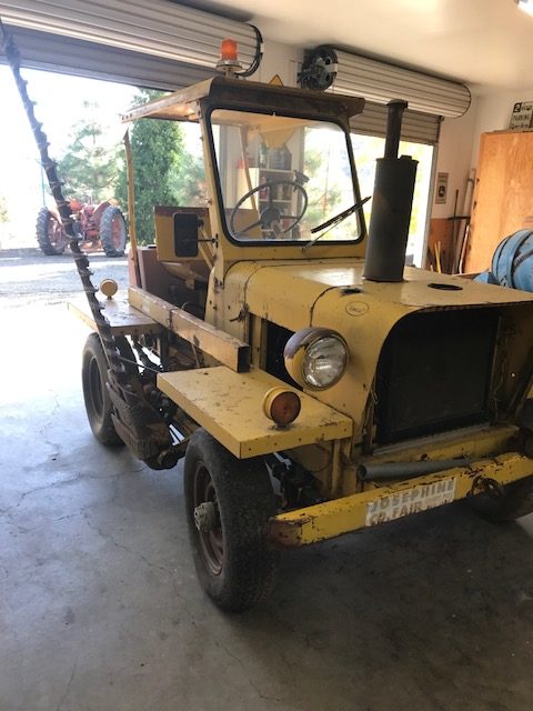 “This is an older highway mower it’s four-wheel-drive with what I believe is Willys undercarriage it has a flat head four-cylinder continental motor need some work”