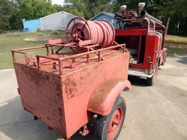 This jeep includes many hard to find original items such as the ladder, draft hoses, nozzles, and hose fittings. There is a wrench that is for lowering and raising the trailer jack. The trailer has two fold down stabilizer supports on the rear. The original key is still chained in place and there is an extra key attached under the hood. The engine is complete with a governor and a hand throttle that comes through the grill to control the engine when engaging the pump. I could go on and on. Look at the pictures. Willys collectors don’t find jeeps like this very often.