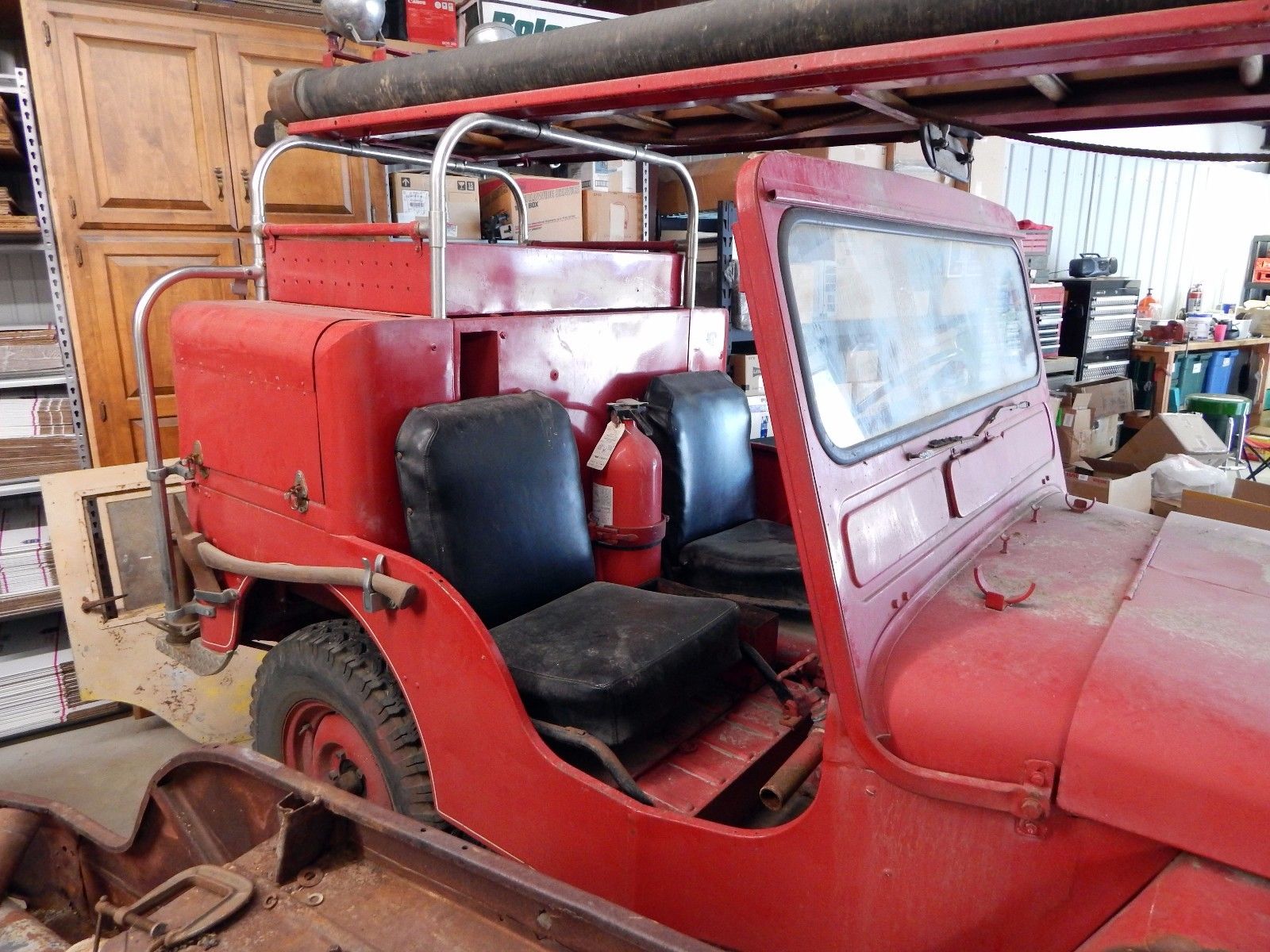 “1949 Willys CJ3A Fire Engine Jeep. This is a Boyer conversion. This jeep is very complete, original, and unrestored. This jeep has less less than 3200 miles on the odometer. Lots of the original accessories are still place. I understand that some of the nozzles are collectible.