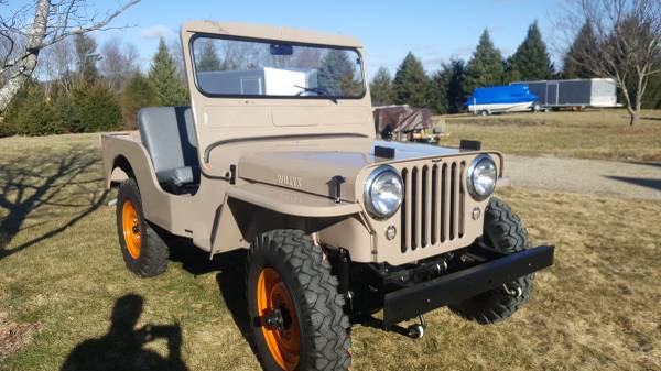 “Willys CJ 3A Jeep with original L134 4-cylinder engine, 3 speed transmission with hi low transfer case. The body is new. Rebuilt engine, transmission and transfer case. All new wiring, still 6v. New tires, new brakes, new seat upholstery, no top but I do have the bows and door frames. Original odometer shows just over 44,000 miles.