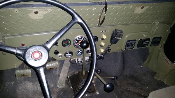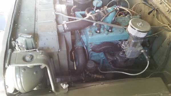 “Runs great, many motor parts are new – to much to list. (will include all receipts). Stock 3 speed transmission has been professionally rebuilt with after market overdrive added (note extra 4th shiftier) now 12 gears forward. New heater under passengers seat / new interior / new top / 2 – ammunition boxes / 2 – shovels / 2 – canteens / 5 – gal. jerry can / electric winch / diamond plate on body / 9 hole radiator grille / reversing headlights (for working on motor at night) / 12 volt system / seat belts / floor mat / C B radio.