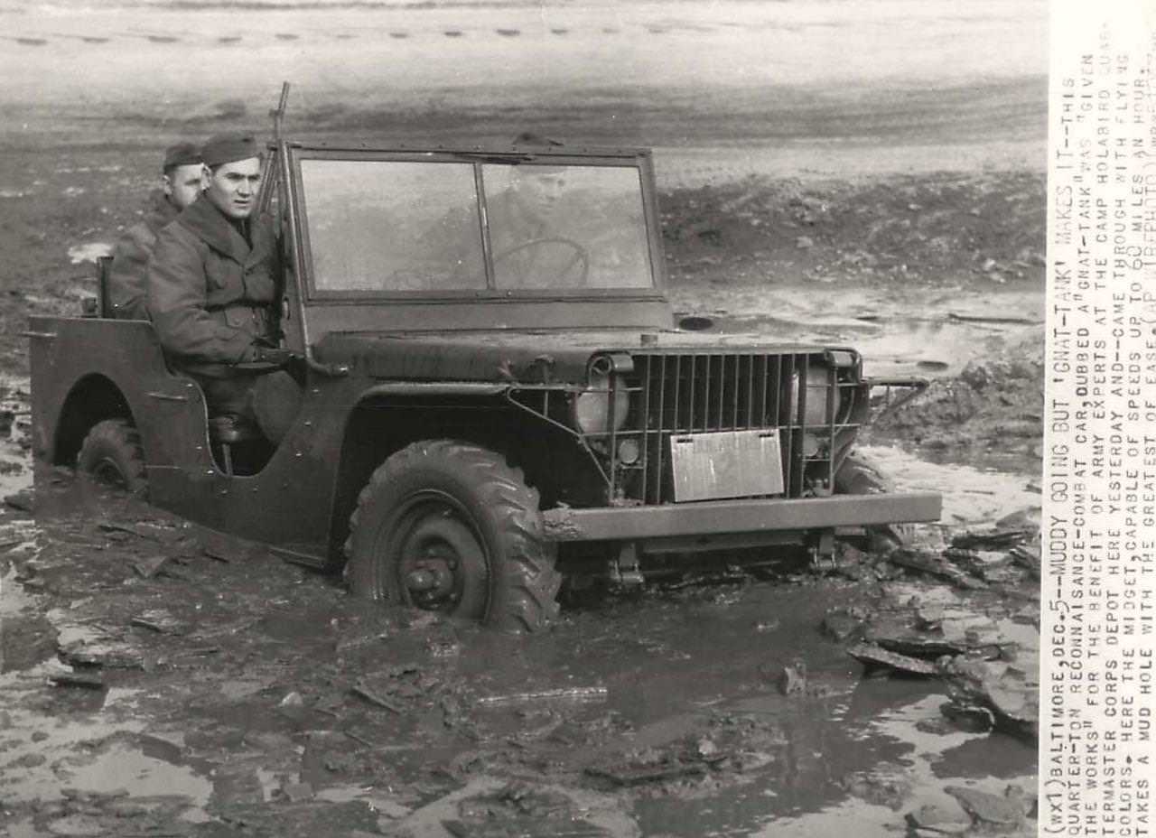 “1940- Ford Pilot Model GP-No. 1 Pygmy, during initial testing after delivery to the U.S. Army Quartermaster Corps at Camp Holabird in Baltimore on November 23.Photo measures approx. 7 1/4″ x 10”