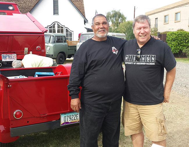 Joe left and Craig Brockhaus on the right chatting and waiting for the door prizes to be distributed.