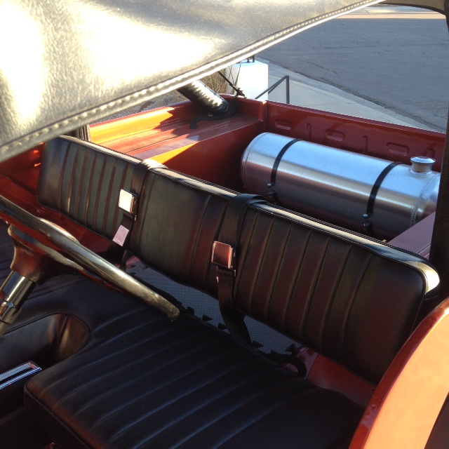 “My son Lee got this from Jim Sullivan a couple of years ago. Once he got it from Jim, he found the hardtop body and tub were very rusty and had been cut by previous owners many years before. So he began modifications on this Jeep. It still retains the stock DJ3A frame, (with serial number), 4 lug wheels, front and rear axles (4.56 rear end ratio), and steering column topped with a Willys station wagon wheel. It has a custom seat, teardrop taillights. It is titled as a 1957 DJ3A.
