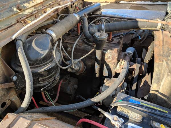 L134 flathead and Carter WO carb. 3 speed Dana. 4×4 works. After market roll bar, front winch and hard top. Tailgate installed on tub. Aftermarket rims with five new tires. New master cylinder, rear drums, wheel studs, wheel brake cylinders and brake shoes. Full fluid change, tune up and lube job. Rebuilt carb.