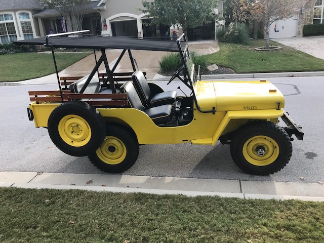 “1947 CJ2A runs perfect and reliable. Complete new fuel system (tank to carb), new complete exhaust system, new interior, new tires, new custom top and frame, newer complete 12V conversion, new steering components, newer paint, newer brakes, etc. very rare bed extender. Perfect for town or the hunting lease.”