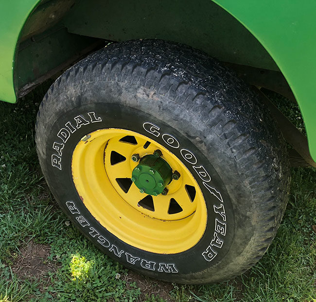 Another mod are the fake full floating rear hubs. Lawrence didn’t want the standard hub caps showing in the rear of his vehicles, so he created some fake hubs that cover the standard hubs and slide on underneath the rims. It sure fooled me!