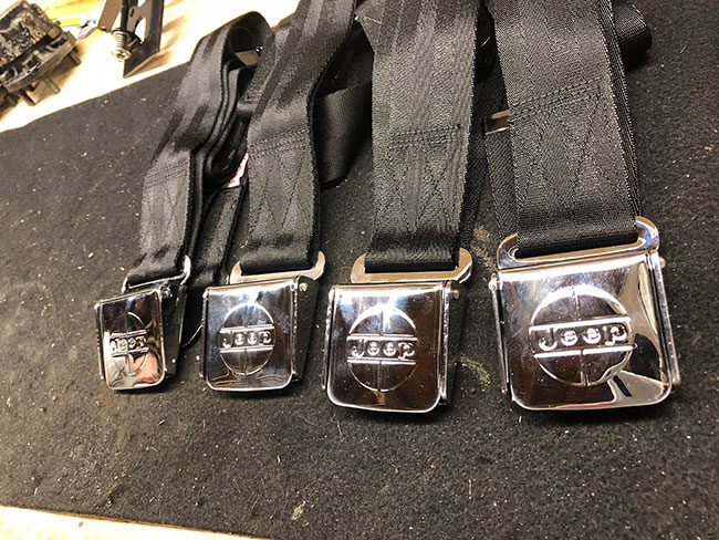 Maury also has a CJ-5, which is getting restored. He had these seat belts re-chromed for it. They look great.