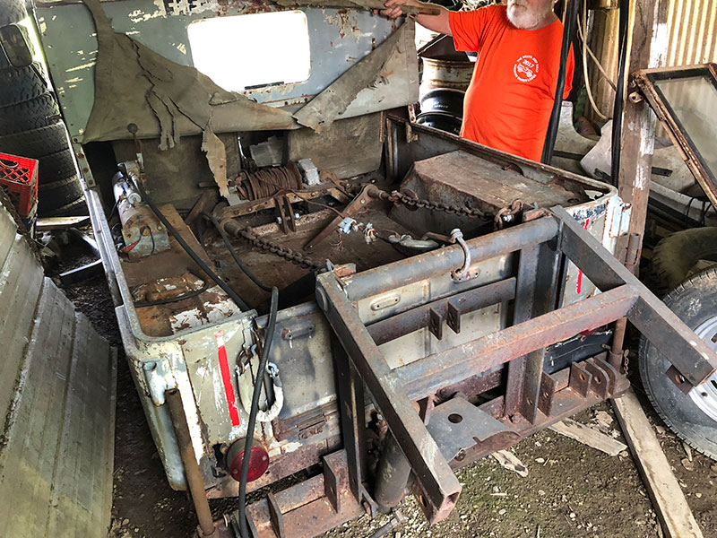 Now for some vehicles. This truck with a driller doesn’t work at the moment, but Rick hopes to get it running and operating. It’s a pretty big project, but he seems to do a good job getting his vehicles running.