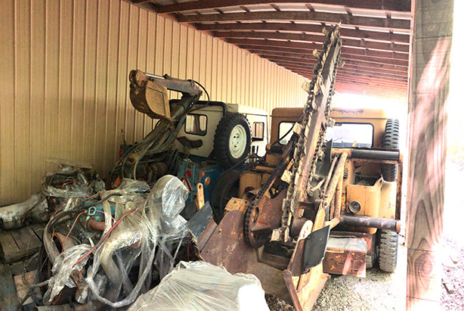 Of course, some people just can’t have one backhoe. We found another one in one of the sheds, next to a trencher.