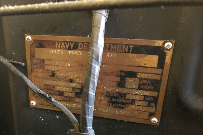 Finally, this DJ-3A is a bit of a conundrum. It’s an automatic. At first Rick mentioned it was a 1955, but the only data plate is a Navy plate. I tried to read the data plate (mounted to the firewall) as best I could and something was stamped 1955, but then I took a pic, something I didn’t examine until doing this post. It’s then that I saw the feb of 1957 stamp and a serial number (12812) consistent with that time period (though it didn’t have the pre-script of 56337).